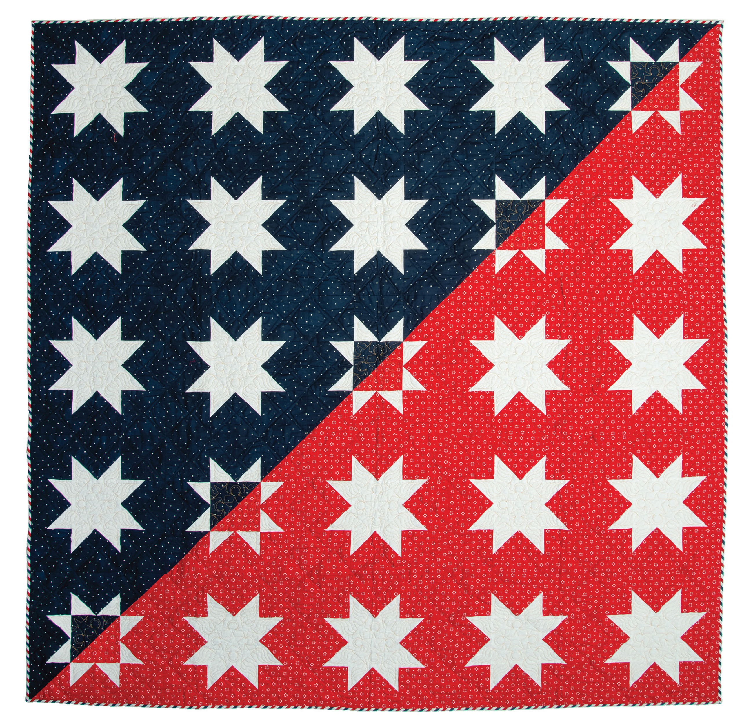 The Quilts of Valor organization’s mission is to “cover Service Members and Veterans touched by war with comforting and healing” quilts donated by volunteers. This quilt was made by Mary Kerr, a noted quilt historian, for her husband, adding another layer of meaning to its making and sharing. Spouses of veterans make sacrifices to serve the country too.